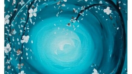 Всем привет! Меня зовут Екатерина, я художник-видеоблогер. Веду свой YouTube канал под названием "TessaArt" :) Сегодня у меня своего рода творческий бум, мне захотелось сделать что-то очень простое, сказочное, и чтобы это мог повторить любой и получить удовольствие. Начинаем с фона, нам надо его «закрутить». Берем кисть по больше и, начиная с белого цвета, рисуем круг на весь холст. Этот круг постепенно расширяется, и мы добавляем в него бирюзовый цвет. И так мы продолжаем закручивать, смешивать цвета, пока не закрасим весь холст...