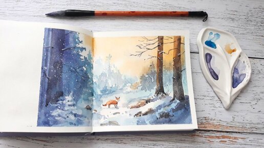 Фото урок - рисуем сказочный лес акварелью. Волшебный пейзаж с лисичкой 🦊