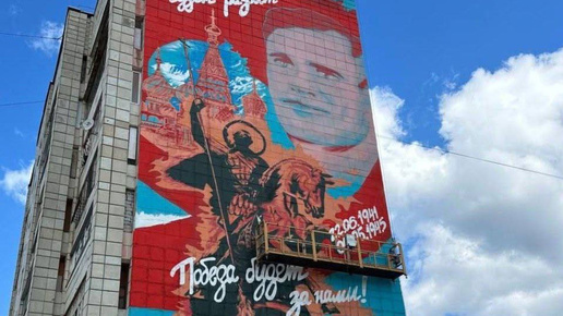 В Пермском крае раскрасили фасад в память одного местного участника Великой Отечественной войны: Глядя на этот очередной "шедевр" пропагандистского искусства вы ни за что не догадаетесь, какая страна победила в Великой Отечественной войне. Не догадаетесь потому, что на картинке вы не найдет ни Красного знамени Победы, ни Красной звезды с серпом и молотом, ни других признаков СССР. Зато найдет церковь с православным крестом на куполе и Георгия Победоносца с копьем. Из чего можно подумать, что победу одержал некий православный народ, окормляемый христианскими пастырями...