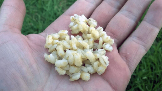 Насаживаем по одной перловке Чтобы перловка надежно держалась, насаживать ее на крючок лучше со стороны выпуклой спинки. Это часть зерна, противоположная желобку или бороздке. Если зерно не было начисто отшлифовано, то на его спинке останется оболочка, которая поможет перловке прочнее удерживаться на крючке...
