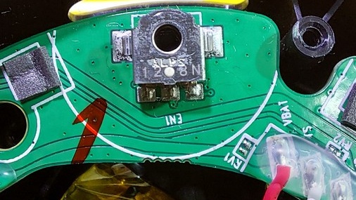 На самом деле регулируется, но только в одном направлении - вниз, а вот громче делать не получается, как бы ни крутил колесо. Проблема окажется в энкодере громкости, который мы и заменим. Лить туда спирт или другие жидкости по очистке смысла нет, это даст лишь временный эффект. В наушниках используется миниатюрный энкодер на три контакта (классический механизм) в исполнении SMD (для поверхностной пайки). В таком исполнении энкодеры довольно редкие, мне понадобилось использовать поиск Гугл по фотографии, чтобы отыскать замену...
