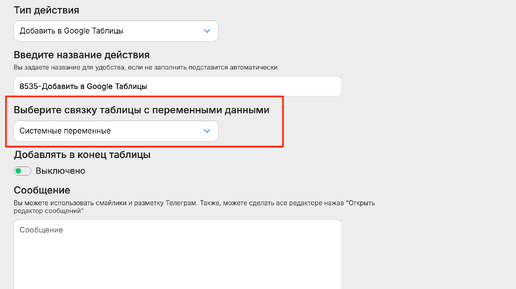 Как настроить поиск в Google Таблицах по переменным и системным данным через BOTM.PRO