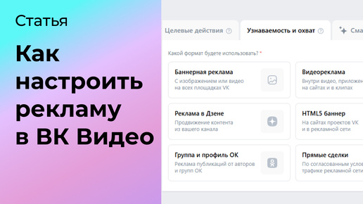 Хотите привлечь больше клиентов, увеличить продажи и повысить узнаваемость бренда? Реклама в ВК Видео — мощный инструмент для достижения этих целей, но только если вы знаете, как его использовать. Эта статья — практическое руководство по настройке рекламы в ВК Видео. В ней вы найдёте полезные советы, которые помогут освоить рекламный кабинет ВК Видео. Определите, чего хотите добиться. Например: От этого будет зависеть настройка параметров: какие метрики будут отслеживаться, какие форматы объявлений будут доступны, и какие инструменты таргетинга будут работать...