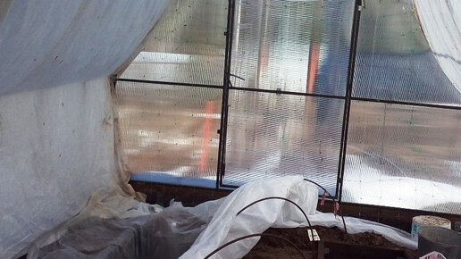 Еще в начале апреля я посеяла в теплице некоторые семена на рассаду. Сначала поставила дуги и накрыла по дугам свои очень ранние для нашего региона посевы укрывным материалом и пленкой. В два слоя делала потому, что земля еще была холодная и необходимо ее было как-то побыстрее прогреть. Но, потом решила, что мучаться-то: открывать утром, вечером закрывать. Не лучше ли укрыть спанбондом всю теплицу. В прошлом году я уже пыталась делать такое общее укрытие, но неудачно были придуманы крепления ткани...