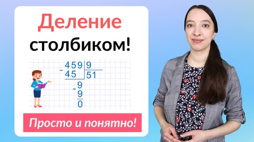 Здравствуйте, дорогие родители! Как научить ребенка делить столбиком? Это одна из самых сложных тем на уроках математики в начальных классах, и постоянно встречается в самостоятельных и контрольных работах. Давайте вместе научимся объяснять детям деление столбиком. Алгоритм деления 1. Прочитай и запиши пример. 2. Выдели первое неполное делимое. 3. Определи высший разряд и количество цифр в частном. 4. Выполни деление, чтобы найти первую цифру в частном. 5. Выполни умножение, чтобы определить, сколько единиц высшего разряда осталось разделить...