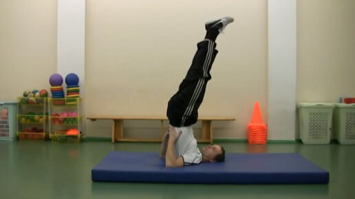 Это упражнение многим хорошо знакомо по занятиям в детском саду или школе. В целом несложное упражнение, однако имеющие небольшие нюансы. Для многих более привычное название, которое пришло к нам из детского сада, когда все упражнения получают какие-то образные названия - "Берёзка". Официальное название - стойка на лопатках. Выполнение: из положения лежа на спине поднимаем ноги вверх, отрываем спину от опоры, выпрямляемся, руки сгибаем под спину, помогая себе удерживаться в нужном положении. Опора идет на голову, верхнюю часть спины (в том числе и на лопатки) и руки...