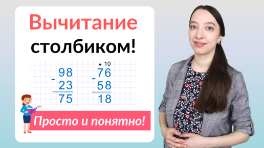 Сегодня разберем одну из самых важных тем по математике, вы узнаете как научить ребенка вычитать столбиком. Вычитание столбиком даётся детям довольно сложно. Я покажу алгоритм вычитания столбиком, так же обратим внимание на вычитание столбиком с переходом через десяток. Мы вместе на примерах научимся вычитать столбиком многозначные числа. Если объяснять ребёнку наглядно, у вас не возникнет вопроса как легко научить ребенка вычитать столбиком. Приятного просмотра! Чтобы вычитать многозначные числа, люди привыкли использовать столбики...