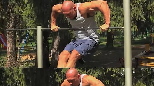 Доброго времени суток читатели, я решил написать обучающий материал о том как освоить выход силой на две руки на турнике, вот как он выглядит. Пошаговые движения правильного выхода силой. Выход силой на турнике довольно таки сложное упражнение , которое задействует большое количество мышечных групп. Самую большую нагрузку принимает спина, предплечья и грудь в 3-4 стадии так как нужно отжать себя от перекладины. В этот момент работает только грудь ну и совсем чуть чуть трицепс. Сразу скажу, если вы не можете подтянуться 10 раз - вам выход силой на две не сделать никак, максимум на одной...