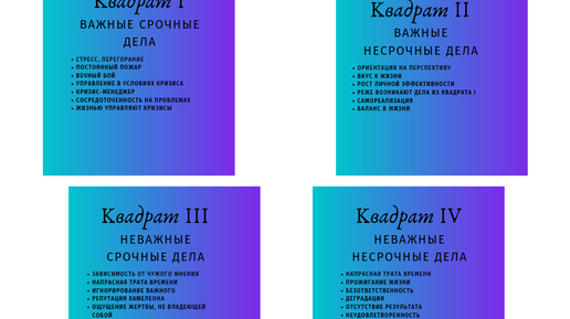 Продолжаю покорять книгу Стивена Кови "7 навыков высокоэффективных людей". Согласно теории Кови существует 4 уровня планирования (перечисляю от простейшего к наиболее эффективному): 1. Ведение списков. Формат: записки, памятки. Акцент: "Чтобы ничего не забыть сделать". 2. Ведение ежедневника/календаря. Составление планов и графиков. Акцент: "Чтобы все успеть вовремя". 3. Приоритетность дел. Расстановка приоритетов А, В, С для дел в ежедневнике. Акцент: "Упорядочить срочные дела". 4. Управление временем и жизнью по квадратам...