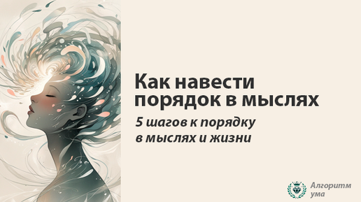 Порядок в мыслях - порядок в жизни! Поговорим о том, что лежит в основе благополучного образа жизни и любого успеха - о порядке в мыслях. Да-да, именно там, в вашей голове, рождаются идеи, которые могут изменить вашу жизнь, и там же, к сожалению, иногда царит настоящий хаос. Если хотите добиться хороших результатов в своих делах или просто жить счастливо, вам нужно навести порядок в своих мыслях. Мы живем в мире, где информация льется на нас со всех сторон: социальные сети, новости, повседневные проблемы, личные обязательства...