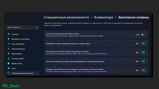 Как отключить или включить залипание клавиш в Windows 10