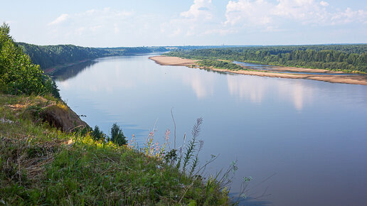 Марийцы называют её Виче, татары - Нократ, удмурты - Ватка. Русскому же она знакома как Вятка. Сегодня мы её и посмотрим - реку Вятку, текущую из Удмуртии через Кировскую область в Татарстан, чтобы там впасть в Каму. Кстати, Вятка - это вообще второй по величине приток Камы (после Белой) и крупнейший правый приток этой не менее величественной и красивой реки, оспаривающей у Волги право впадать в Каспийское море. Помня о таких фактах, я про себя назвал Вятку "внучкой Волги", а Каму, куда впадает Вятка и которая сливается с Волгой" - дочкой Волги и мамой Вятки"...