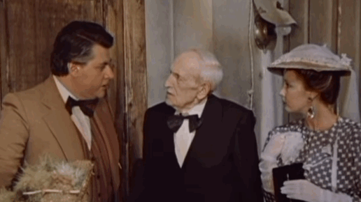 Попробуйте по одному кадру угадать название фильма. Проверьте себя! Что видим в кадре. Двое мужчин и одна женщина. А еще в левом нижнем углу видна шляпа. Видимо там сидит человек. ---- Тест. Как называется этот фильм? ---- Есть 1 подсказка...