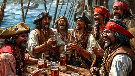 Начало романа. Глава 16. Празднование победы Солнце стояло в зените. Мачты поскрипывали, усиливающийся попутный ветерок постепенно надувал паруса, и корабль, медленно покачиваясь на волнах, пошёл выверенным курсом, который проложил Флетчер. Он было попытался привлечь к этому делу Сергея, но тот не имел никакого представления о навигации. Его познания в географии ограничивались рамками школьной программы, он имел очень приблизительные представления об этой части земного шара, где сейчас находился вместе с кораблём...