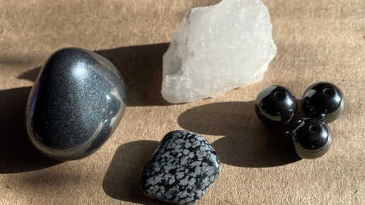 Гематит, кварц, снежный обсидиан