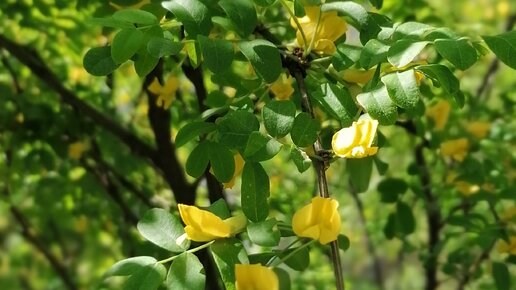 Шли вчера на рынок и, когда проходили мимо кустов, увидели, что зацвела акация. По умному, среди всяких там ботаников она, как говорят, называется «карагана древовидная»… Но в тех краях, где я рос и росли в большом количестве эти кусты, да и растут до сих пор, ее почему-то называют «мышиным горохом». Наверное, из-за того, что в конечном счете на кустах появляются длинные узкие стручки с мелкими горошинами внутри. Горошины эти были невкусные. Но вот свистульки из них получались замечательные. Лучше, пожалуй, только из луковых стрелок можно сделать...