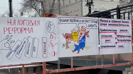 В центре Иркутска около 150 предпринимателей вышло на митинг против повышения налогов для малого и среднего бизнеса, сообщает телеграм-канал «БГ Иркутск». Также они записали обращение к президенту России Владимиру Путину. Мероприятие, организованное главой «Ассоциации предпринимателей Иркутской области» Михаилом Ожигановым, прошло на площади Труда под лозунгом «За Родину! За Победу! За развитие! За Путина!». Организаторы заявили об акции как о всероссийской — по видеосвязи к ней подключились предприниматели из Новосибирска, Челябинска, Удмуртии и Томска...