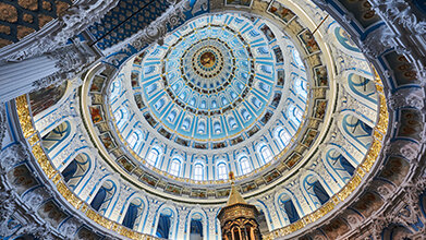 В прошлый раз мы рассказывали о том, какие бывают храмы и об их внешних архитектурных особенностях. Сегодня же давайте поговорим о том, как устроен храм внутри. Вот мы перешагнули порог храма, и теперь давайте разберемся, как называются части храма. Сразу у входа, у двери, находится притвор (притвор по-славянски и значит «дверь»). Здесь обычно располагается свечной ящик, где мы можем взять свечи, написать записки о здравии и упокоении, заказать молебен или панихиду. В некоторых храмах притвор отгорожен от средней части храма...