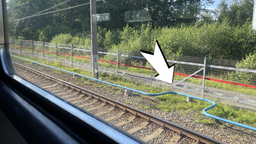 Зачем синие трубы, идущие вдоль железной дороги, имеют изгибы через определенное расстояние? Что по этим трубам течёт?