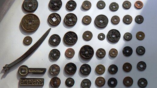 Разнообразие китайских монет.