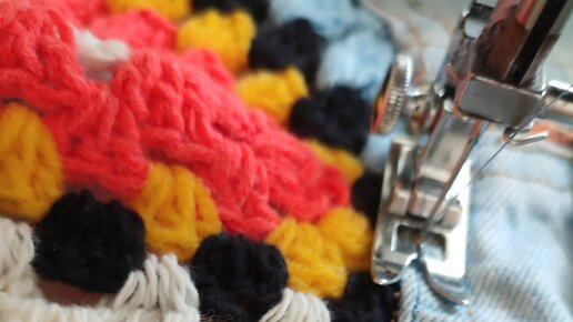 Вроде чего надо, дано: джинсовая старая куртка, но с очень качественной джинсой. Слегка потёртая местами, разорванный ворот. Куртка хорошая, но тяжёлая. Плотная ткань утяжеляла её. С другой стороны плотность помогала не поранить тело в лесу! Так бы и лежала она у меня на даче, пилила бы в ней дрова, ходила по лесам... Но мне захотелось попробовать себя в новой работе. Соединить, то, что обычно носится отдельно. Отдельно вязанное, отдельно шитое...