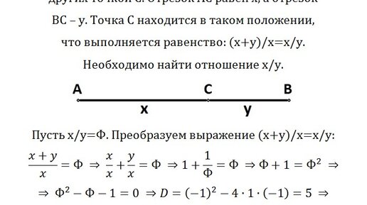 Всем привет! Любили квадратные уравнения в школе? Я обожал! :)) Предлагаю сегодня вспомнить о них. Что это такое, как их решать. В конце разберём пример, в котором доказывается, что золотое сечение Ф≈1,618, а не какому-то другому числу. Итак, квадратное уравнение - это уравнение вида: Почему а≠0? Потому что в случае, когда а=0, уравнение становится линейным: bx+c=0, а такое уравнение решается в одно действие: x=-c/b. Вспомним, что квадратное уравнение может быть полным и неполным. Если все три числовых коэффициента (a, b, c) отличны от нуля, то уравнение полное...