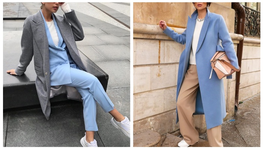 Нежно-голубой цвет отлично украсит собой красотку самого разного возрастного диапазона. Мало того, небесный оттенок визуально молодит и освежает внешность, что также является его преимуществом. В данной публикации стилисты поделятся с нами идеями образов с модным оттенком, а также научат нас комбинировать его с другими модными палитрами этого года. Первый весенний look включает в себя оверсайз классическое пальто и свитер из мягкого кашемира актуального небесно-голубого цвета, нюдовую миди юбку на запах с высокой посадкой, а также поясную мини сумку пудрово-розового цвета...