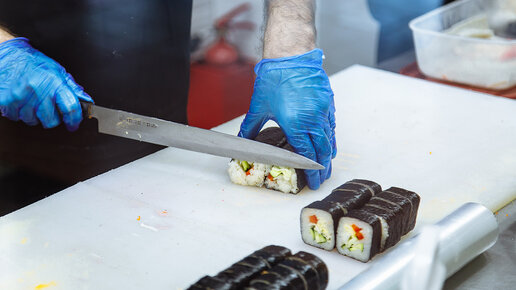 Японские ножи отличаются от привычных нам тем, что многие виды из них затачиваются только с одной стороны. Это приводит к тому что лезвие японских ножей гораздо острее, чем у клинка заточенного клином с обеих сторон. Однако острие японских ножей, как правило, затачивается с двух сторон! При приготовлении роллов и суши повара используют следующие ножи: 🔪 Деба-бочо Большой и тяжелый тесак используемый для тяжелых и крупных работ. Разрубание толстых рыбных костей, снятие филе, разделка целой рыбы...
