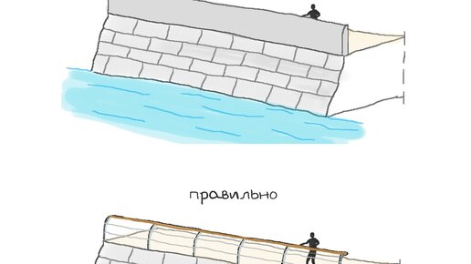 Если в городе есть природный пейзаж, он должен быть максимально доступным глазу. Простое правило для набережных: ограждение не должно мешать смотреть на воду. Поэтому его нужно делать из легких металлических конструкций с деревянным поручнем, на который удобно облокотиться. К сожалению, многие чиновники не думают о таких "мелочах" и согласовывают проекты набережных с глухими стенами-ограждениями...