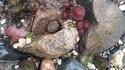 Почему то вспомнилась именно эта песня группы Звери "Ухожу красиво". А у меня сегодня подборка растений, которые выходят красивыми из под снега, стойко выдержав морозы и красуясь теперь среди слякотного унылого пейзажа. 😁 У самого входа уже радостно встречает бересклет, сорт не знаю, но это ползучая форма. На мини-рокарии у входа можно полюбоваться: арабисом; крупкой, которая совсем скоро зацветет; молодилами. В суккулентном мини-садике самая красивая - это конечно армерия можжевелолистная. ...