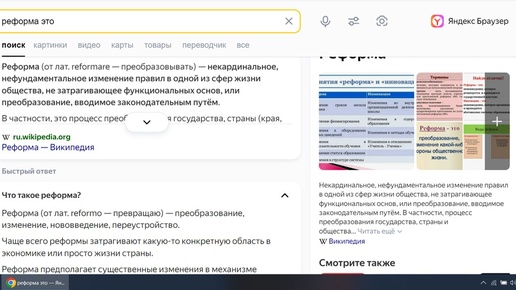 И снова пост "по заявкам", на этот раз сразу двоих читателей. Признаться, я сначала не нашла, в чем именно состоит подмена. Реформа - это некое изменение, что тут подменять? А потом открыла два подряд словаря - просто первые в поисковике - и удивилась. Сравните сами: Википедия пишет про НЕкардинальное преобразование, а Яндекс в Быстрых ответах - существенные изменения. Википедия у нас давно и всерьез ангажирована, поэтому можем брать ее за яркий пример западного мнения. Яндекс, правда, тоже с грешком, но он ссылается на наши словари...