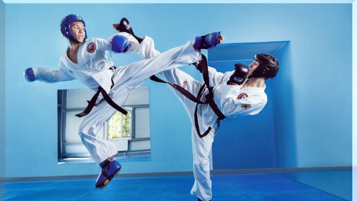 Тхэквондо - корейское боевое искусство, характеризующееся акцентом на удары головой, прыжки, вращающиеся удары и быстрые приемы ногами. Разработанный в 1940-х г. он сочетает элементы каратэ, китайских боевых искусств и традиционных корейских боевых искусств, как Таекьён и Субак.