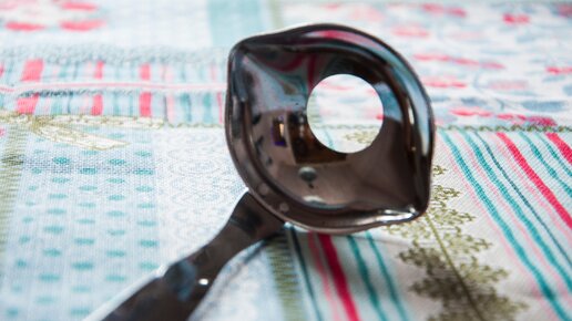 Полковник купили новый в Икее, лёгкий, а этот - отдала мужу с просьбой: сделай, пожалуйста, дырку посередине. Размером с пятирублевую монету...