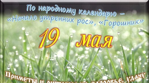 Сегодня 19 мая апреля 2023 года, 139 день 2023 года по григорианскому календарю, 6 мая юлианского календаря (по старому стилю). 28-й лунный день. 30 Солнечный День 2 солнечного месяца, который знаменует воплощение Порядка, благодаря которому мир находится в Гармонии и в Равновесии. Приветствую тебя мой гость. Сегодня День недели - пятница, да не простая, а «Горошница». На Иова было принято сеять горох обязательно во время захода солнца, чтобы пернатые не заметили и не поклевали. Был и запрет – нельзя было сеять у дороги...