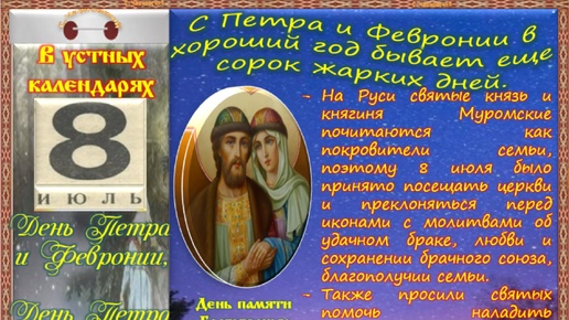 8 июля - Традиции, обычаи и поверья, связанные с этим днём. Все праздники, которые отмечаются в этот день в разных календарях.