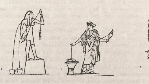 Прялки и прядение в древних цивилизациях: 1 - получение пряжи в Древнем Египте; 2 - древнегреческая прялка (рисунок на античной вазе; 3 - древнерусская прялка.
