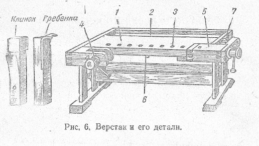 Рабочее место столяра Верстак — прочный, массивный рабочий стол  ( рис 6.)с приспособлениями для удержания досок, планок и другого материала в горизонтальном или наклонном положении. Оглавление. Столярные работы Рис. 6. Верстак и его детали Столярный верстак состоит из крышки, или верстачной доски, двух тисков, ножек, или корпуса, между которыми располагается подверстачье для хранения материалов. Верстачная доска 1 служит, для укладки и закрепления на ней материала на время обработки, ее делают...