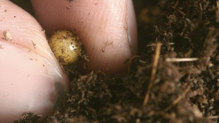 В покупном горшке с растением обнаружила желтые шарики. Что это? Личинки каких-то насекомых?