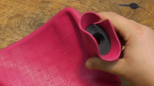 Народ, всем привет! Сегодня речь пойдет о резиновой клизме или, как ее еще называют, грелке. Я поделюсь с вами как из нее можно сделать классную самоделку для гаража или дома. Клизму буду использовать самую обыкновенную. Первым делом от нее необходимо отрезать все лишнее. С крышки отрезаю петлю, она больше не пригодится. Далее в крышке необходимо просверлить отверстие. В полученное отверстие я вставляю сосок от бескамерного колеса. Вот так вот выглядит установленный сосок. Теперь крышку закручу обратно на клизму...