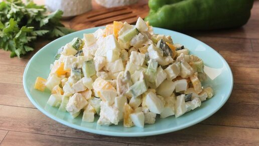 Салат с брынзой, курицей и овощами - вкусно и полезно! Пошаговый рецепт