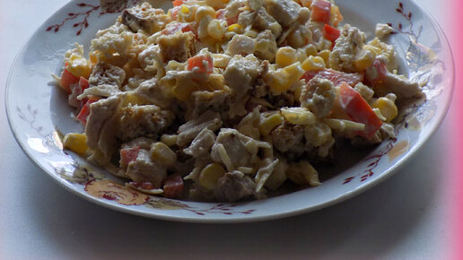 Салат с сухариками и курицей. Просто, быстро и очень вкусно!