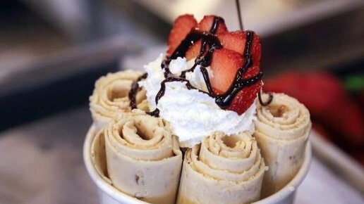Тайское мороженое - это десерт из мороженого, но в необычной форме - оно имеет форму роллов...