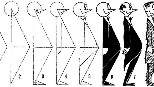 Рисование комического персонажа при помощи треугольника.