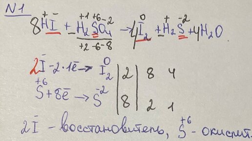 Химия. Задание №20 ОГЭ. Окислительно-восстановительные реакции. Вот и настала вторая часть - она, как мне кажется, достаточно лёгкая всегда. Теории тут нет, сразу решаем. А. Используя метод электронного баланса, расставьте коэффициенты в уравнении реакции, схема которой: Определите окислитель и восстановитель. Объяснение: Обратите внимание: где я делал баланс йода (-), переходящий в йод (0) я домножил первый йод на 2. Я сделал так потому что йод как простое вещество всегда двухатомен...