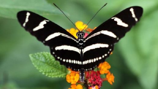 Бабочка Зебра Как следует из названия, бабочка имеет низкие узкие крылья с полосами, похожими на зебры. Их крылья черного цвета с желтыми полосами. Верхняя и нижняя части крыльев зебры longwing имеют одинаковый рисунок. Но цвет нижней части крыла гораздо светлее, чем у верхней части. Завораживающие бабочки распространены по всей Южной и Центральной Америке. Размах крыльев Zebra longwing составляет от 72 до 100 мм. Этот вид распространен по всей Южной и Центральной Америке, а также далеко на север...