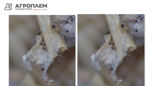 На картинках выше - изображения гифов и спор микрогрибов, полученных с помощью оптического стереомикроскопа при микроскопическом анализе в лаборатории Агроплем. Вторичными метаболитами данных плесневых грибов являются микотоксины. Микотоксины образуются под действием таких факторов, как температура, влажность, наличие субстрата, определенная концентрация кислорода и углекислого газа, наличие паразитических насекомых и степень распространенности гифов микрогрибов. Микотоксины обладают выраженными...