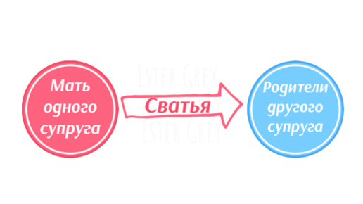 Мы предыдущих статьях мы узнали, кем же приходятся родители одного супруга невесте/жениху, а также как называются "новоиспеченные" братья/сестры. В этой статье вы узнаете: кем друг другу приходятся родители супругов, жены братьев и мужья сестер, крестные родители молодоженов по отношению к родителям молодоженов и вообще приходятся ли кем-то двоюродные сестры/братья и дальние родственники друг для друга. Запутались? Давайте наглядно Мать одного из супругов по отношению к родителям другого - сватья Отец одного из супругов по отношению к родителям другого - сват...