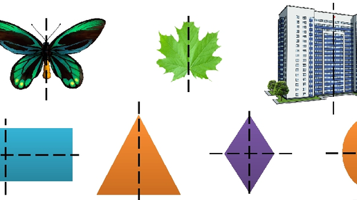Понятие осевой и центральной симметрии знакомо многим. Ребёнку проще объяснить осевую или зеркальную симметрию на примере фигур или предметов живой природы. Попробуйте предложить ребёнку вырезать из бумаги такие фигуры, как квадрат, прямоугольник, круг, ромб, равнобедренную трапецию и сложить их по прямой линии так, чтобы линия сгиба разделила их на две равные, совпадающие части. Эту линию называют осью симметрии фигуры. Конкурс букв и слов 1) Назовите буквы, имеющие одну ось симметрии ( игрок получает одно очко); 2) Назовите буквы, имеющие две оси симметрии...