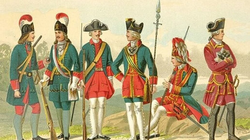 Создавая свою новую армию, Петр I начал с образования потешных полков, затем предпринял путешествия за рубеж, где освоил морскую науку, пушкарское дело, детально изучил воинские уставы и состав регулярных войск Европы. В 1699 вышел первый указ о создании полков нового типа. Рекруты набирались из свободных «охотничьих людей», служивших за 11 рублей в год. Срок службы – пожизненный, при зачислении в армию каждому рекруту делали опознавательную наколку на левой руке. Вновь образованные Петром I полки получали форму по образцу шведской армии...
