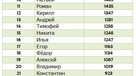 из 137 имен мальчиков, рожденных в Москве. Проверьте на каком месте имя Вашего сына)